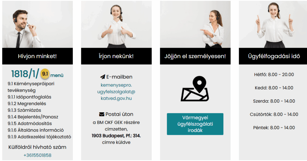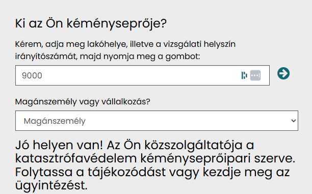 Itt találunk egy „Ki az Ön kéményseprője?” menüpontot.